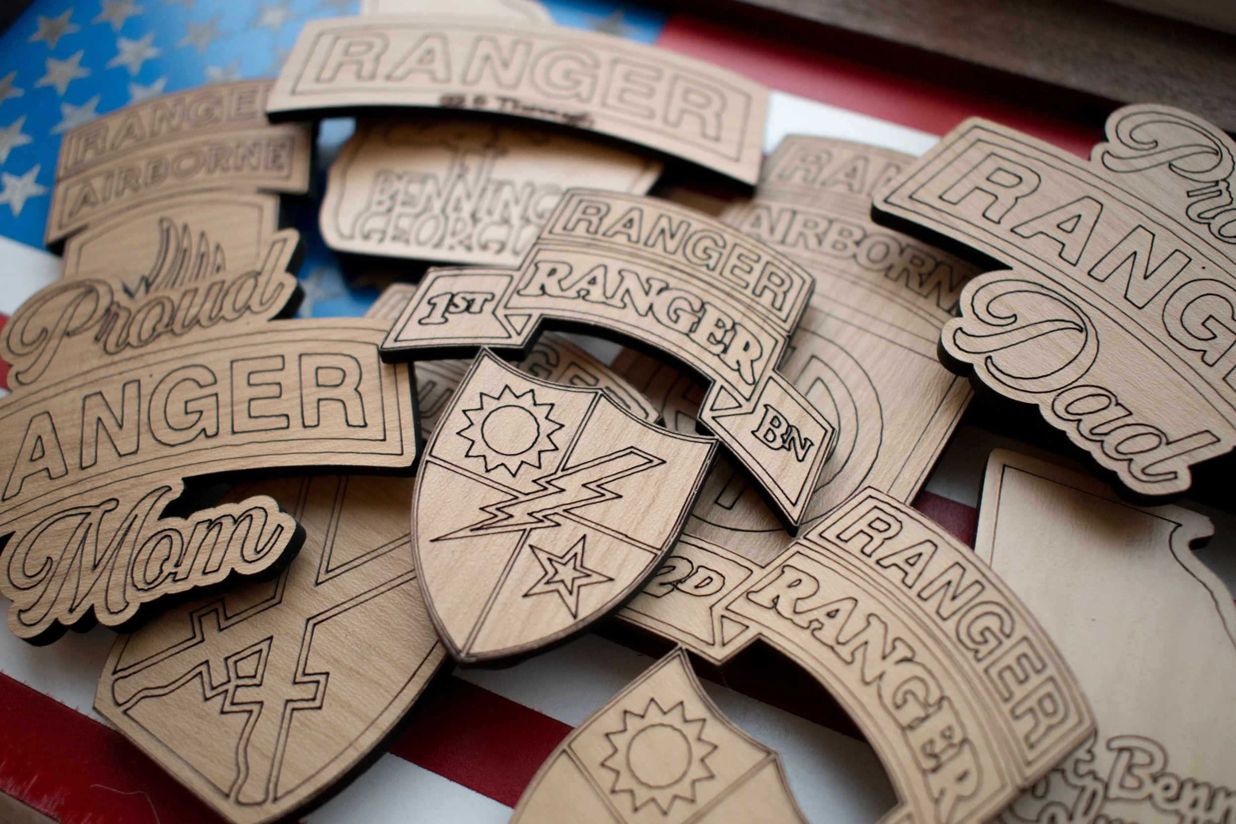 Choose any 3 for $15 (not sold individually) from our full selection of Ranger-themed designs, including classic unit emblems, branch crests, and heartfelt Proud Family Member sayings. Each magnet is carefully crafted from quality wood with detailed engraving. perfect for lockers, fridges, or gifting to the Ranger in your life.
