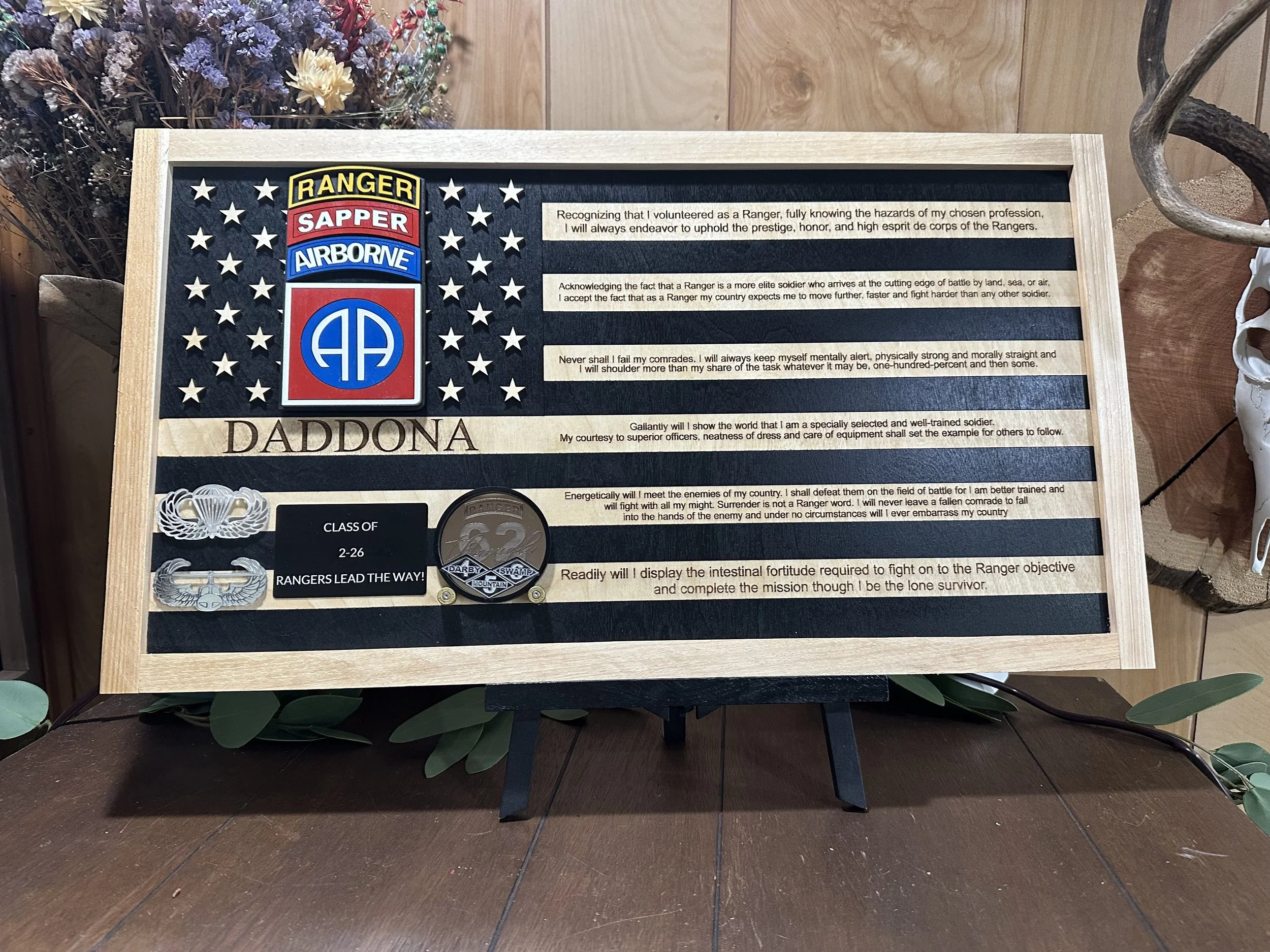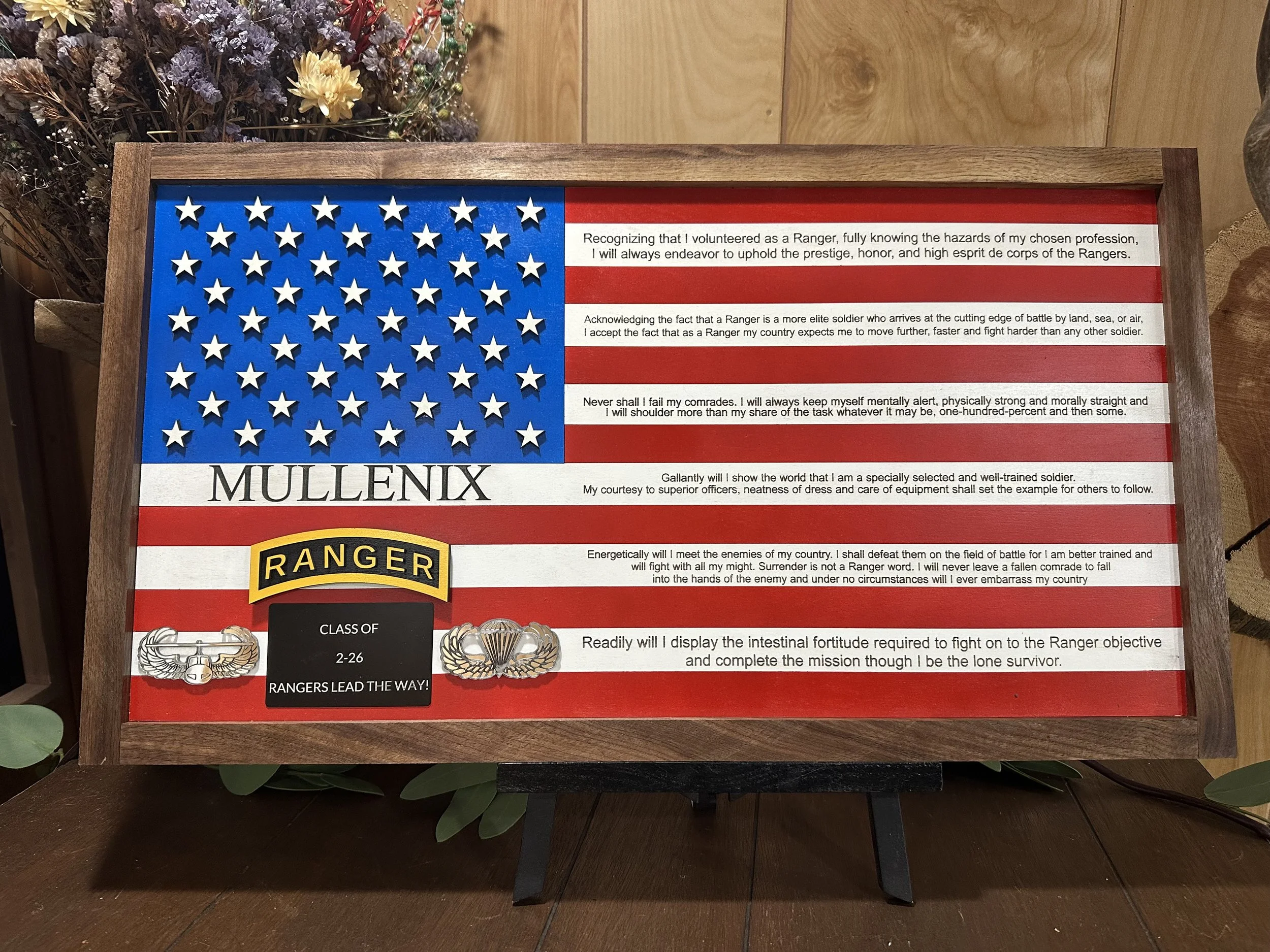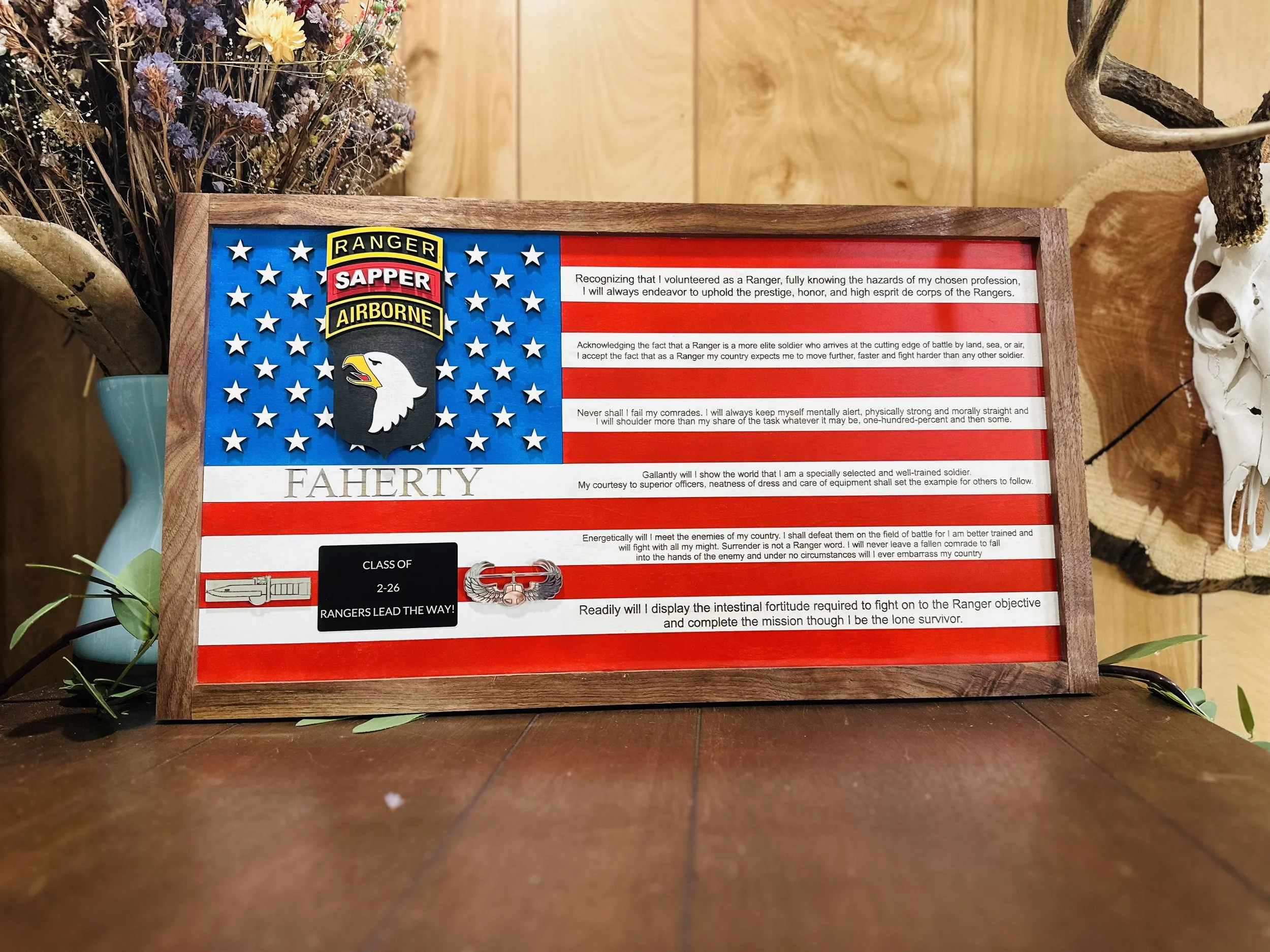 These are just a few examples — we’re not limited to these designs, we love celebrating rangers by tailoring their flag with their name and unit patch, made just for them!