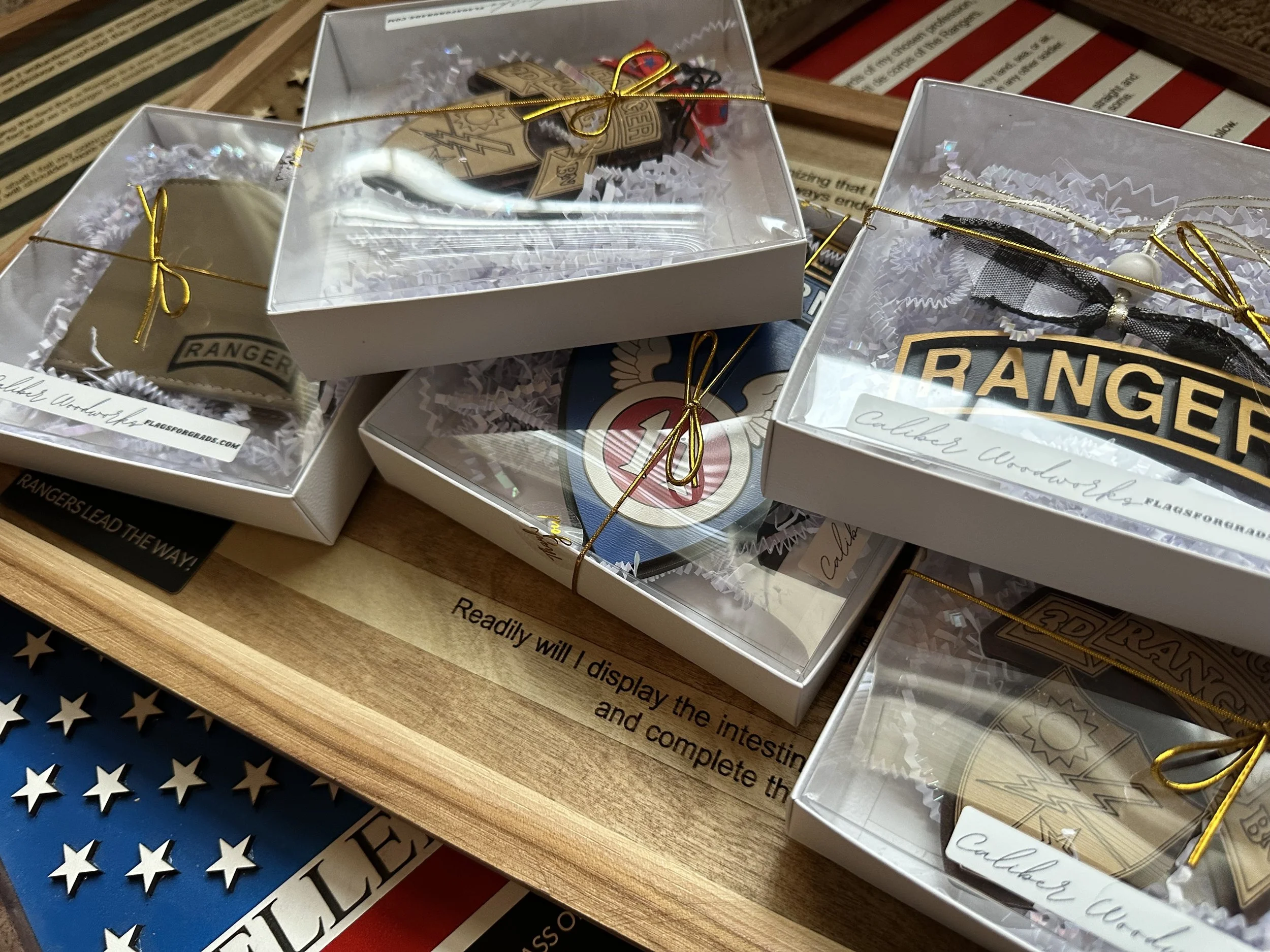 “Our son LOVED this flag! Thank you for going above and beyond to deliver at our hotel. To be honest, when we opened it to take a peek, I cried! It is more beautiful in person. Quality work! We were so excited to gift this to our Ranger. Thank you so much!”